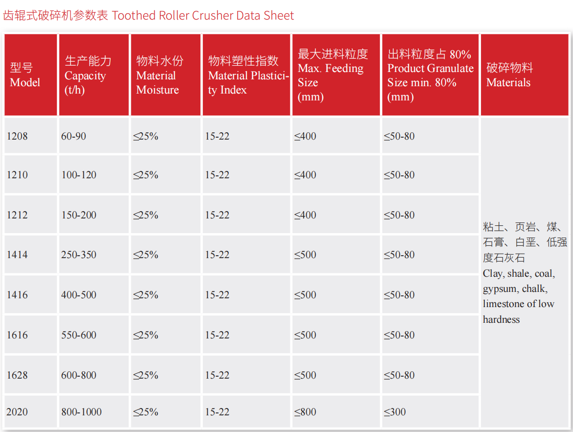 適用于抗壓強(qiáng)度較低的粉質(zhì)砂巖、頁巖、粘土和凍土等粘性物料的破碎。工藝流程簡單,解決了物料的粘結(jié)和堵塞問題,維修保養(yǎng)方便,生產(chǎn)安全可靠。